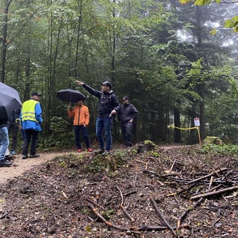 Präsident Dani Schoch führte die Teilnehmenden entlang der Strecke und erklärte die geplante Linienführung. Trailbauer Claudio gab zudem spannende Einblicke in seine Arbeit und erzählte, worauf es beim Bau eines Trails besonders ankommt.